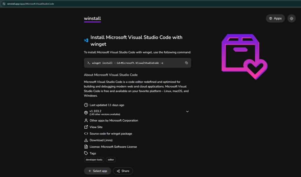 Winstall.app Microsoft’un Windows Package Manager (winget) sisteminin web tabanlı grafik arayüzüdür.