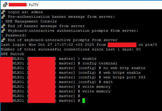 HTTP’yi devre dışı bıraktıktan sonra yalnızca HTTPS ile yönetim yapmak istiyorsanız şu komutları kullanabilirsiniz: