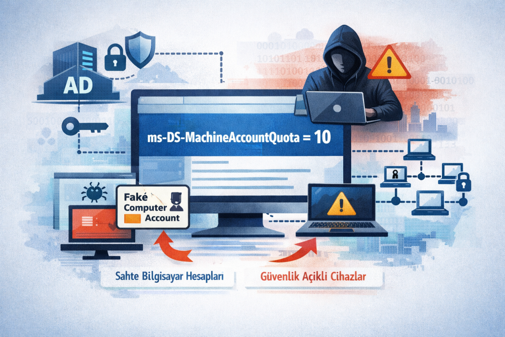 Active Directory güvenliğinden söz edildiğinde çoğu kişinin aklına karmaşık saldırıla, kritik açıklar ya da yüksek yetkili hesapların ele geçirilmesi gelir. Oysa birçok kurumda asıl risk yıllardır sistemde duran ama pek kimsenin dikkat etmediği küçük ayarlardan kaynaklanır. İşte ms-DS-MachineAccountQuota da tam olarak bu tür ayarlardan biridir.